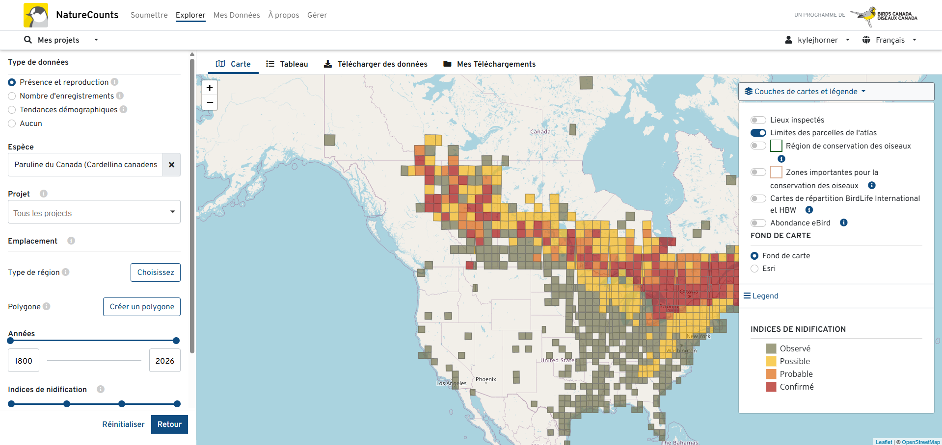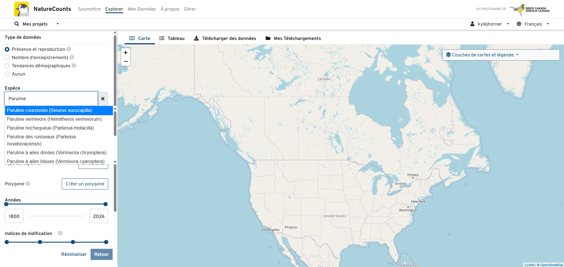 Les cartes des espèces, ainsi que d’autres outils d’exploration de données, sont accessibles dans le menu «Explorer» du site web NatureCounts.