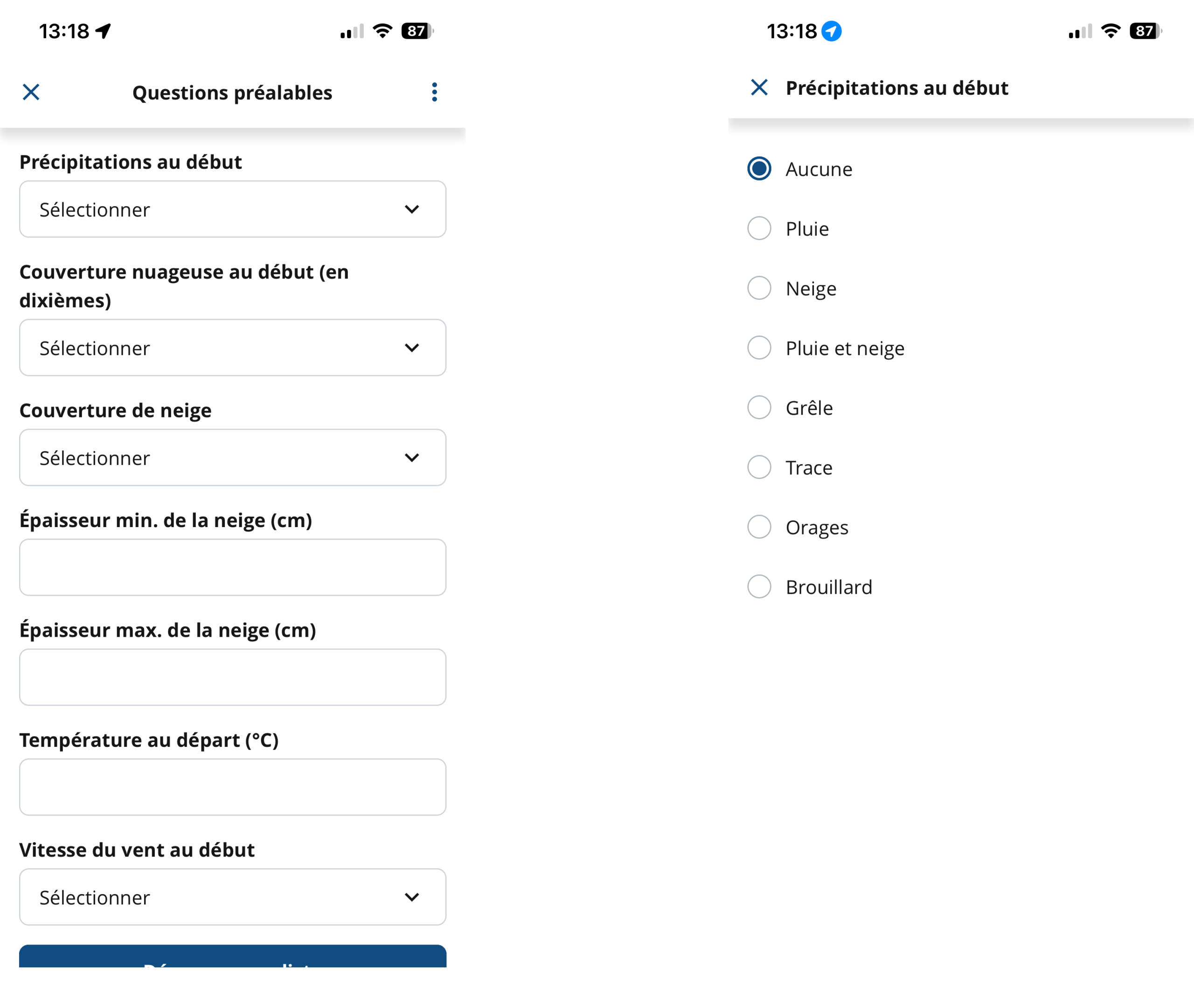 Pour la plupart des projets, vous devrez répondre à quelques questions préalables. Ces questions sont différentes pour chaque projet et apparaissent sous la forme d’une série de zones de texte et de menus déroulants. Les astérisques rouges indiquent les champs obligatoires. Il suffit d’appuyer sur chaque zone ou menu, puis de saisir ou de sélectionner la réponse appropriée. Appuyez sur «Commencer la liste».